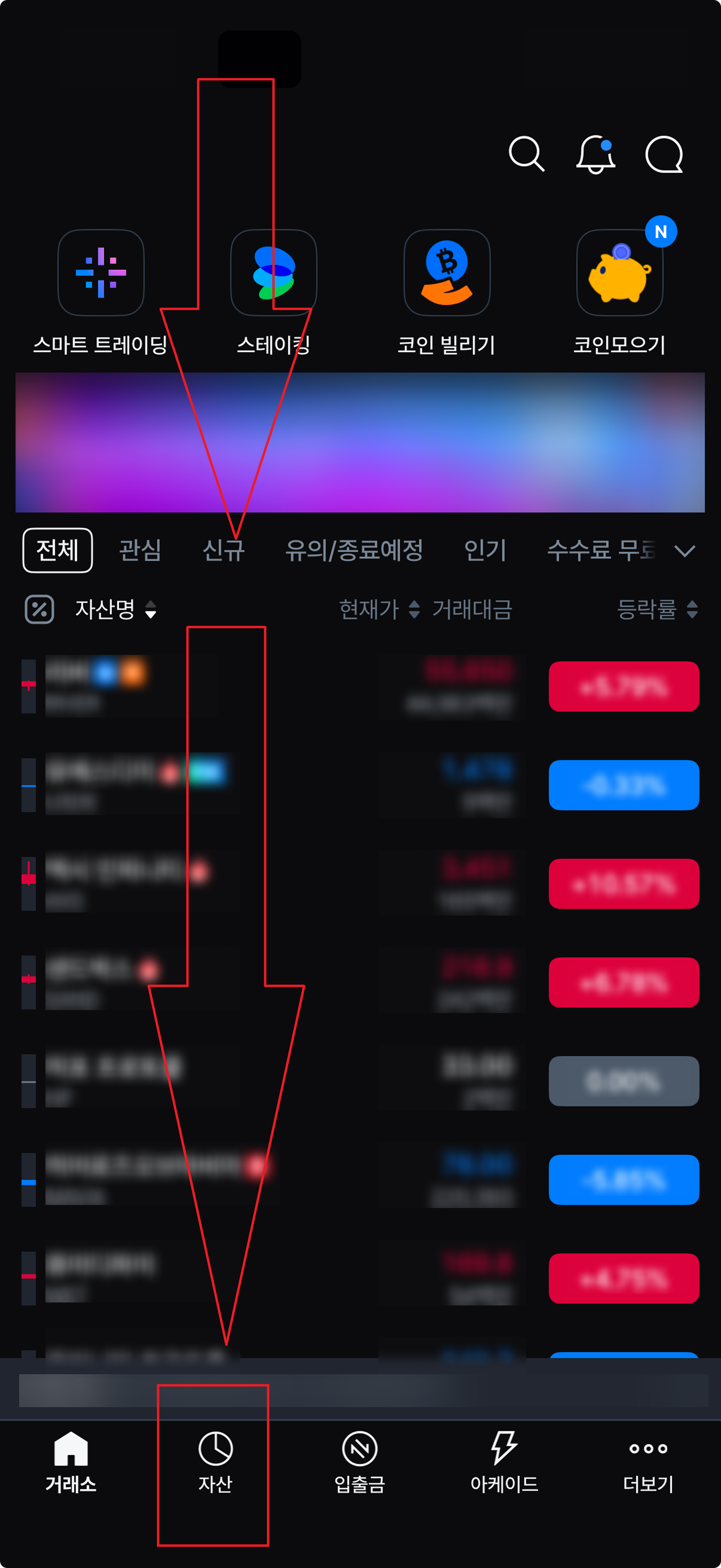 2.메인화면 하단메뉴에 (자산) 클릭합니다.