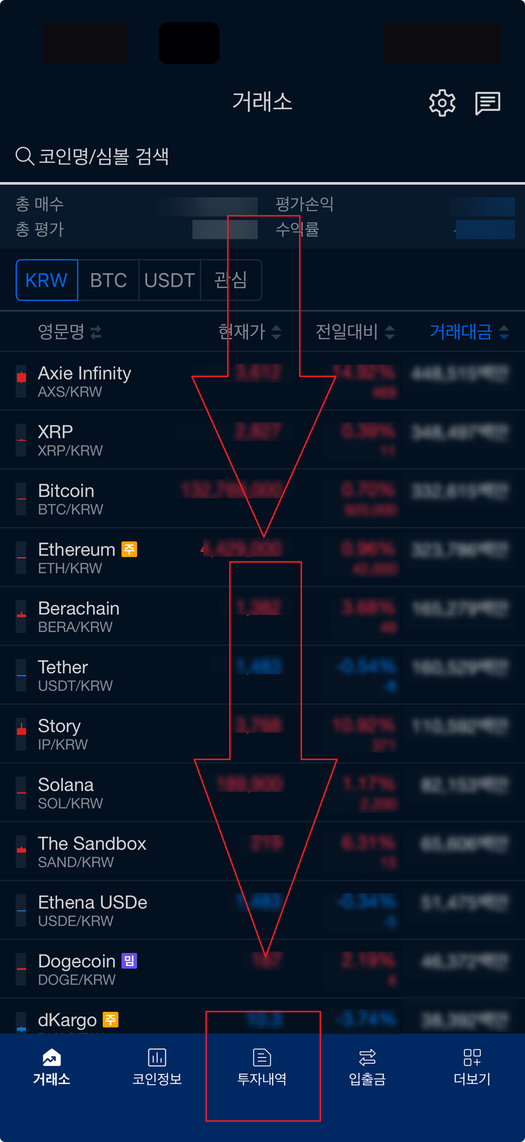 2. 메인화면 하단메뉴에 (투자내역) 클릭합니다.