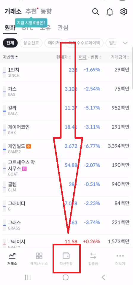 1. 빗썸 앱을 클릭합니다.