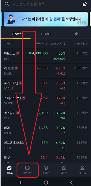 2.메인화면 하단메뉴에 (자산관리)을 클릭합니다.